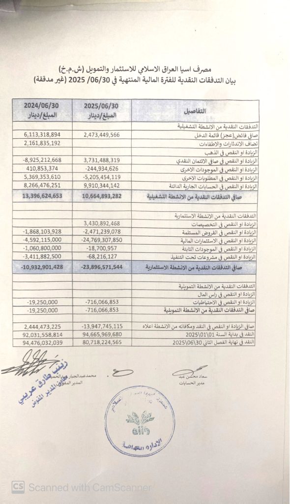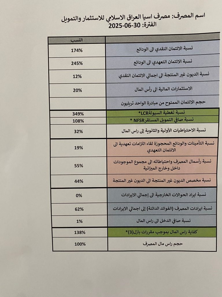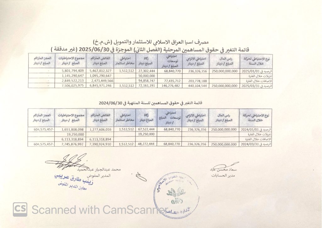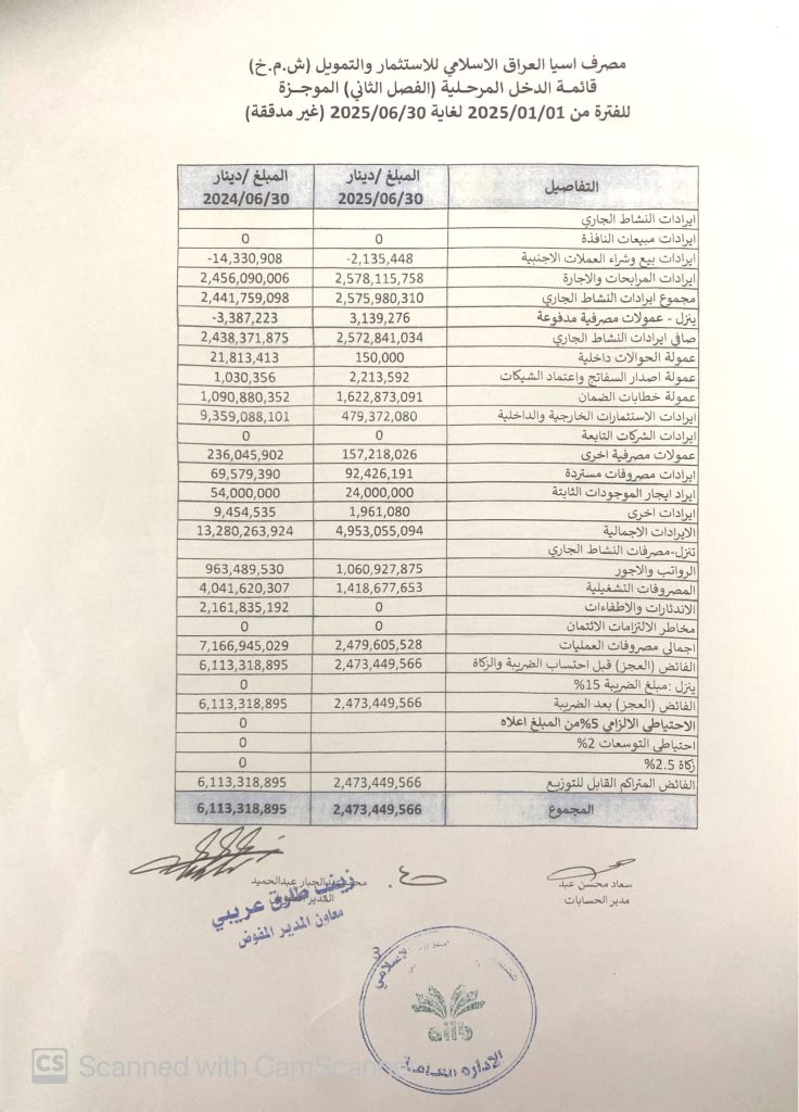 البيانات المرحلية والنسب للفصل الثاني كما في 30/6/2025